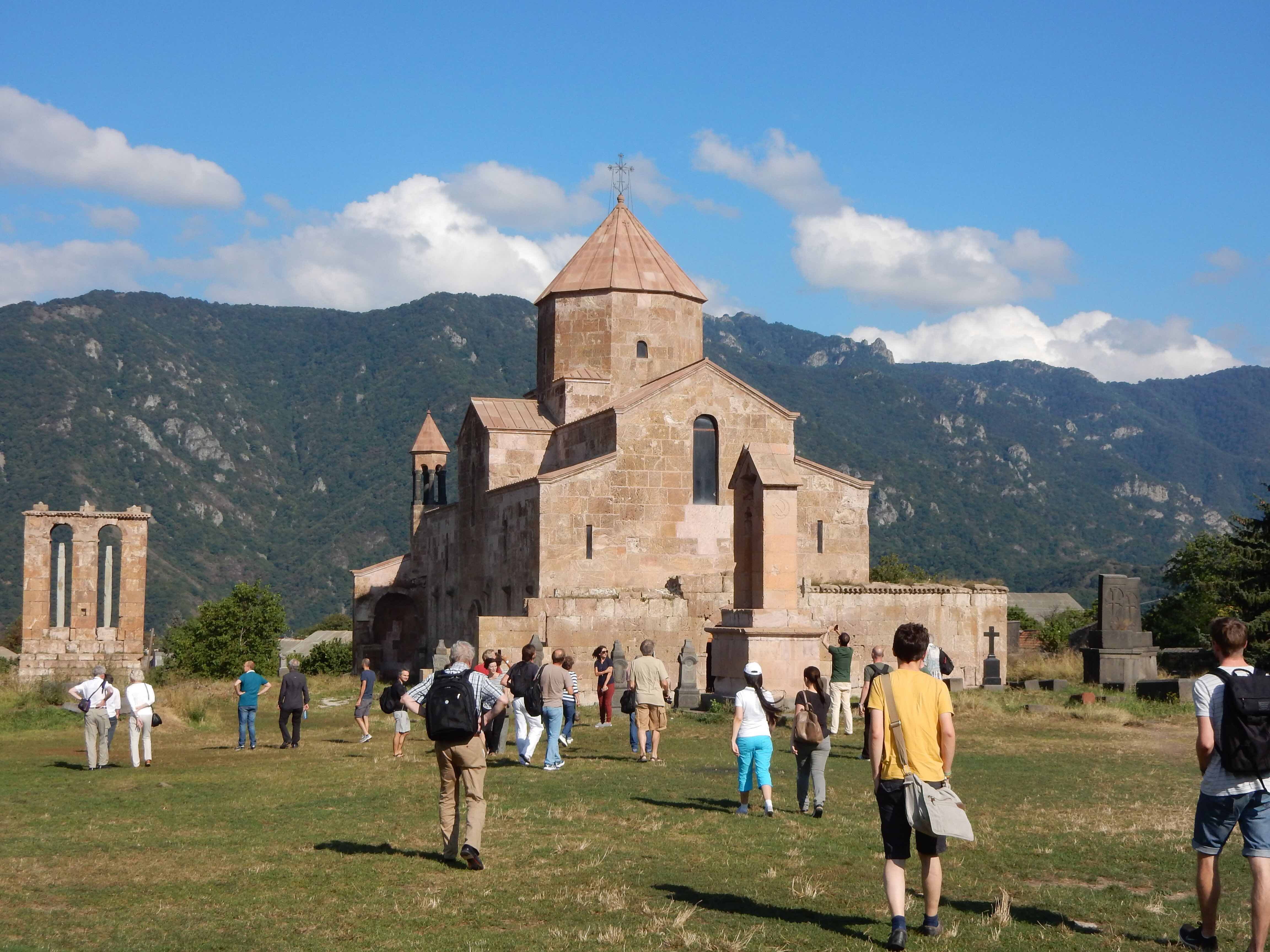 Roman Kotecký and Ostap Hryniv in front of the church of Odzun
